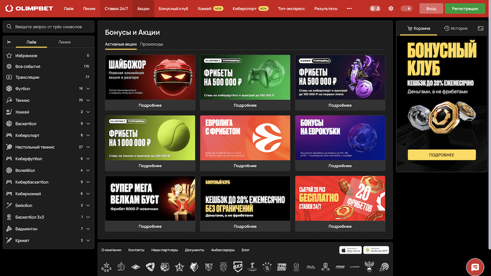- Все бонусы и акции Олимбет