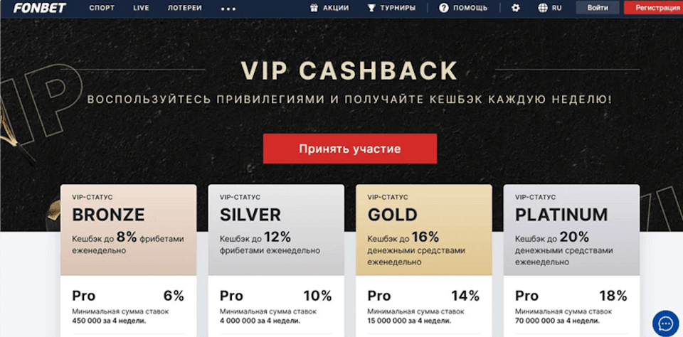 Обратим внимание, что достигнув минимального порога вхождения в программу лояльности можно утратить статус VIP-клиента, если статус не будет подтвержден. Для того чтобы получить VIP-статус надо выполнить условия по минимальной сумме ставок за три недели.