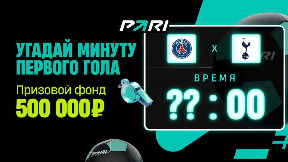 4.2.2.3. Минута первого гола определяется Организатором из источника: https://www.pari.ru/results/