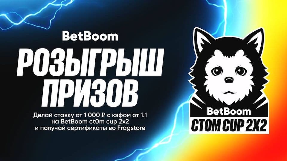 Букмекерская компания BetBoom разыгрывает среди клиентов 50 сертификатов в Fragstore за ставку на ct0m cup 2x2.
