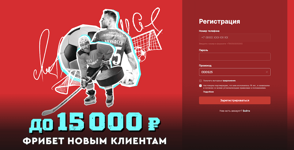 БК Фонбет и odds.ru предлагают воспользоваться промокодом ODDS25 на увеличение первого депозита на 100% не более 15 000 рублей. Претендовать на бонус могут все новые клиенты букмекерской компании, которые зарегистрируются на сайте букмекера и верифицируют личность, а далее пополнят счет на сумму от 500 рублей.