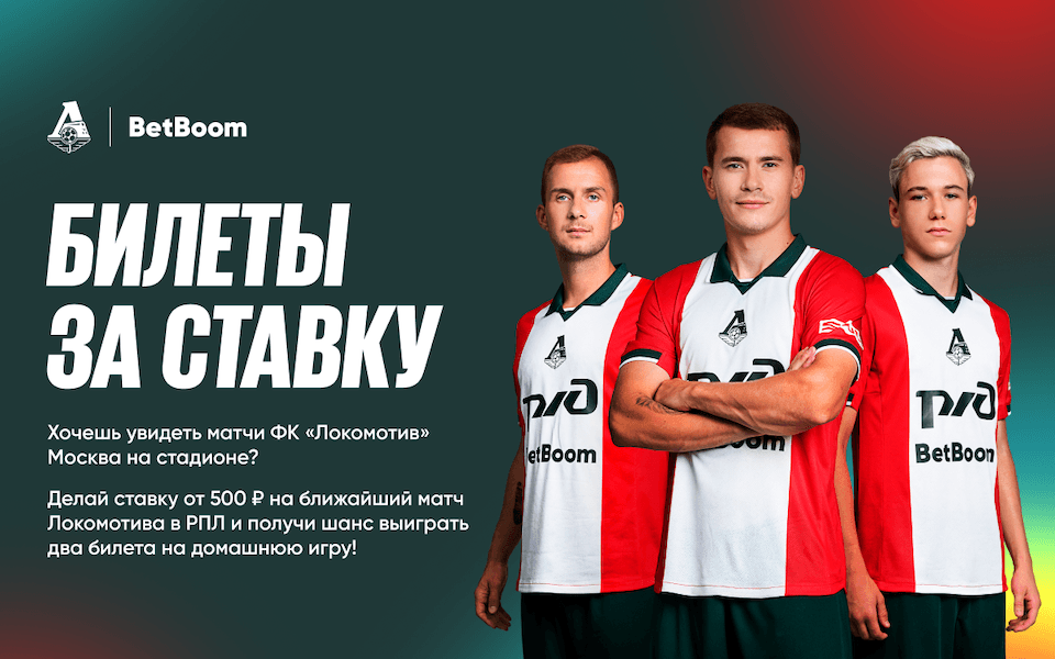 Букмекерская компания BetBoom проводит акцию с розыгрышем билетов на домашний матч ФК «Локомотив» для всех, кто сделает ставку на игру с участием московского клуба.