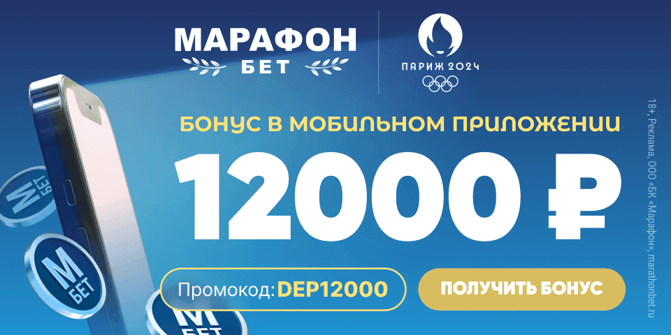 Успейте зарегистрироваться в приложении букмекерской компании Марафонбет и получить до 12000 рублей.