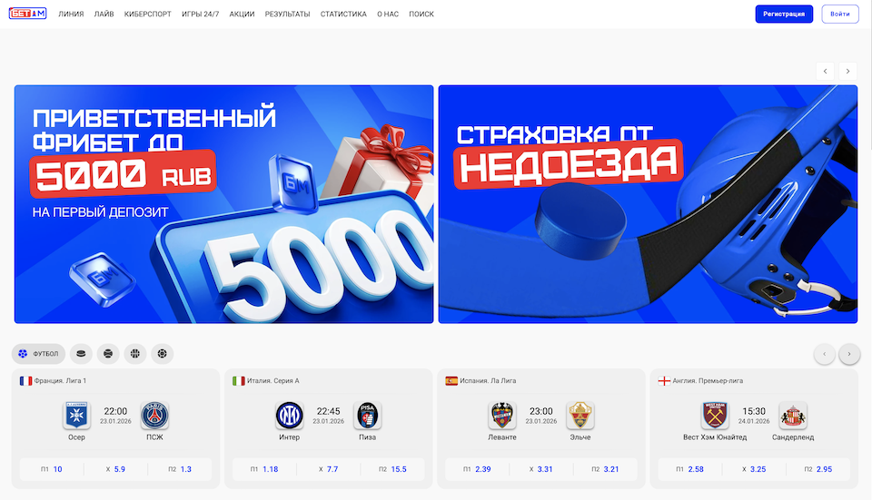 БЕТ-М новый букмекер на российском рынке. Где-то все еще могут появляться, так называемые, «детские болезни», которые в скором времени будут исправлены и устранены. БК ведет ежедневную работу над улучшениями, но, как вы понимаете, на это нужно время.