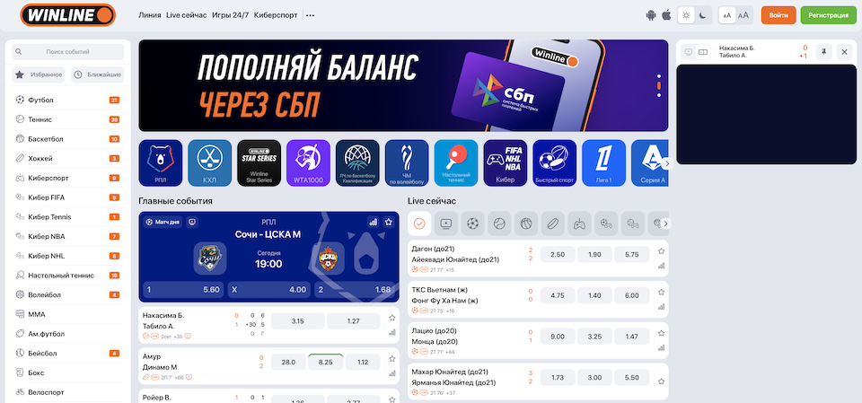 Основные плюсы: моментальные выплаты, широкая линия, отличный техсаппорт, видеотрансляции.