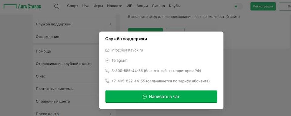 У Лиги Ставок прекрасно работает лайв-чат на сайте, а время реакции на запрос юзера является одним из самых лучших на рынке гемблинга РФ. Связаться со службой поддержки можно не только в онлайн-чате, но и по телефону горячей линии, через электронную почту и чат в приложении.