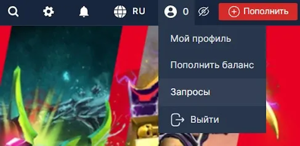 Войдите в систему и кликните кнопку профиля, в выпадающем меню нажмите кнопку «Запросы» и нажмите кнопку «Новый запрос».