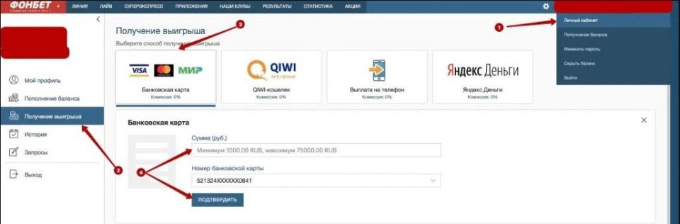 Как вывести выигрыш в Фонбет?