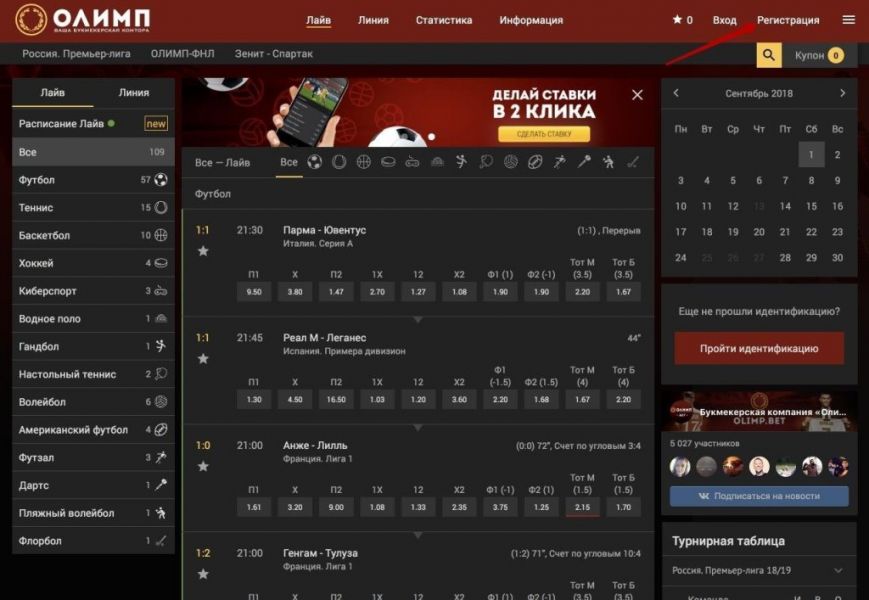 - Зарегистрироваться или авторизоваться на сайте OLIMPBET.