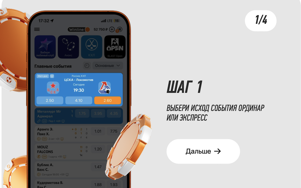 Как сделать ставку-экспресс на мобильном сайте БК Винлайн?