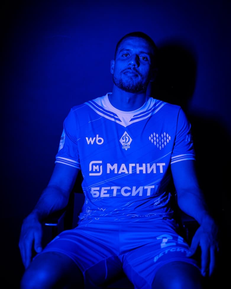 Ранее подобные формы представили «Балтика» и «Сочи» в прошлом туре. Джерси выполнены в синем цвете и украшены классическим гюйсом в белом исполнении, как и манжеты. Фоновый паттерн составили элементы игры «Морской бой». При этом логотипы «Динамо» и БЕТСИТИ светятся в темноте.