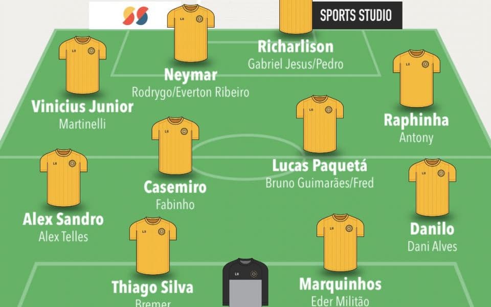 Неймар («ПСЖ», Франция), Винисиус Жуниор («Реал», Испания), Антони («Манчестер Юнайтед», Англия), Родриго («Реал», Испания), Ришарлисон («Тоттенхэм», Англия), Рафинья («Барселона», Испания)