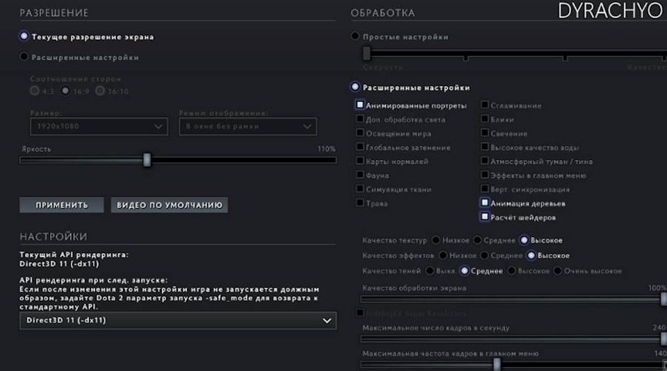 Тут мы попытаемся разобрать, какие настройки графики чаще всего используют про-игроки в Dota 2, чтобы добиться максимальной плавности и отзывчивости управления.