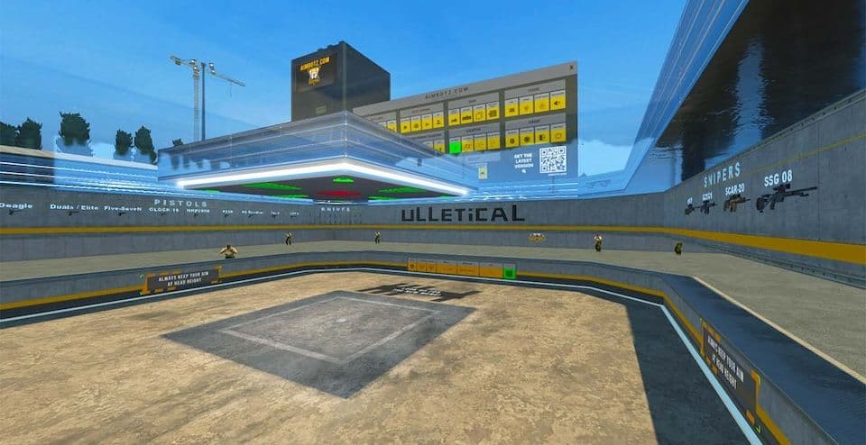 В Steam эта карта пользуется самой большой популярностью. Там присутствуют десятки тренировочных режимов, каждый из которых можно тонко настроить под свои потребности. На этой карте удобно тренироваться не только в стрельбе по мишеням, но и на скорость. Также есть тренировка зажима. Удобно то, что имеется счетчик, который показывает количество удачных и неудачных выстрелов. Тренировки на этой локации проходят без ботов.