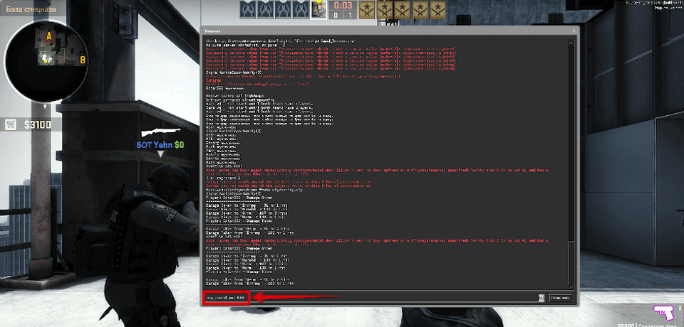 - запустить консоль во время игры;