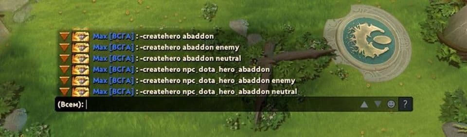 Для создания любого юнита следует прописать чит-код – createhero и название героя. К примеру, если хотите заспавнить персонаж, тогда необходимо ввести - createhero abaddon и появится союзник. Если нужен вражеский, то в таком случае к команде необходимо добавить слово enemy в конце - например, - createhero abaddon enemy.